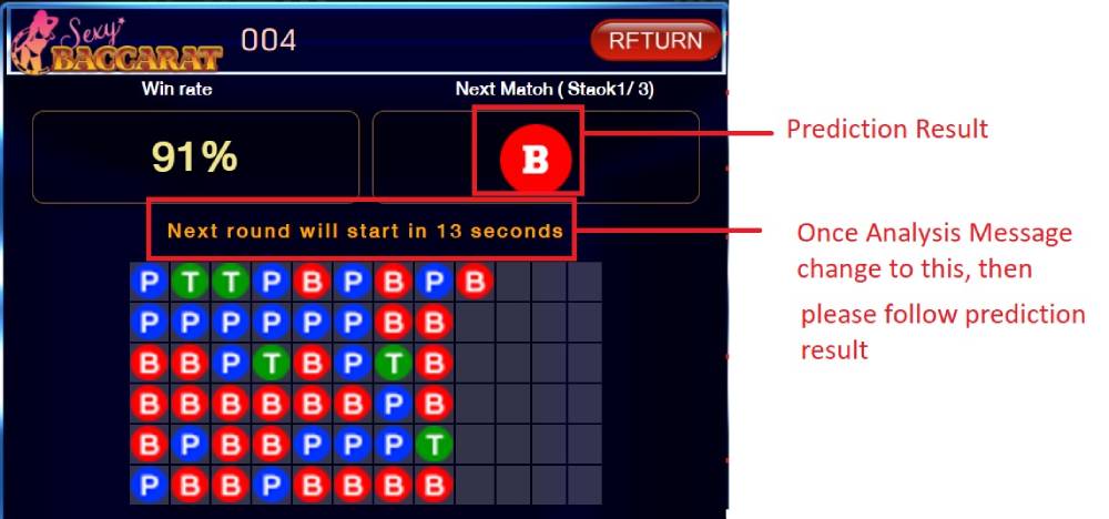 Due to the result is synch with api, sometimes there might be delay for the prediction, so everytime before you bet, please make sure both the software and the live game past result are same.